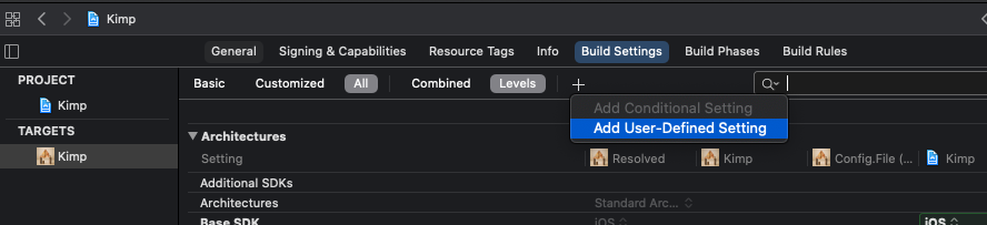 cf) info.plist의 내용도 Bundle.main.object(forInfoDictionaryKey:)로 접근 가능 - Build-Setting에 User-Defined로 앱 APP_NAME 생성