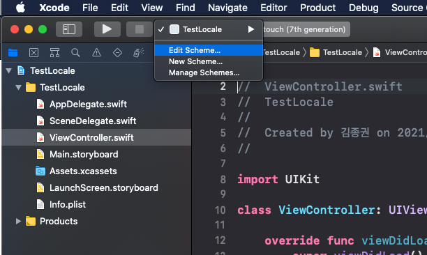 [iOS - swift] Localization, Localizable, 지역화 테스트 방법 (Programmtically, Storyboard, xib)