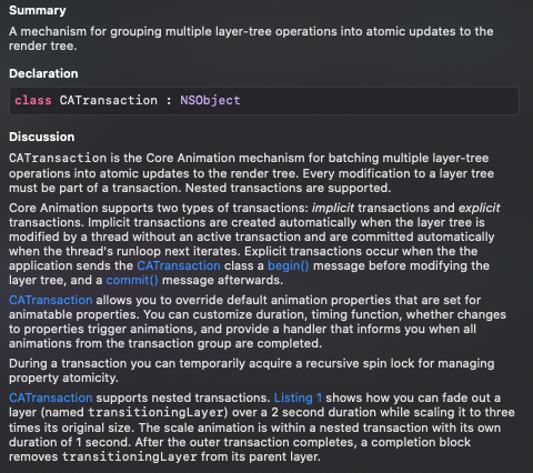 - implicit transaction과 explicit transaction (run loop개념과 동일)에서 explicit transaction을 할 때 CATransaction을 run loop에 CATransaction.commit()코드 이후에 보내게 됨