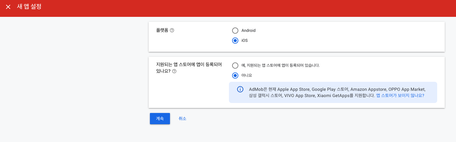 - 앱스토어에 출시할 경우 구글 애드몹 홈페이지 -> 앱 메뉴에서 "스토어 추가" 클릭
