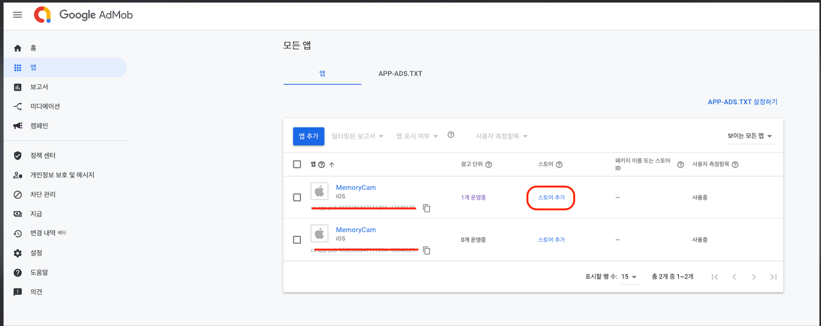 - 확인 방법: 구글 애드몹 -> 앱 클릭