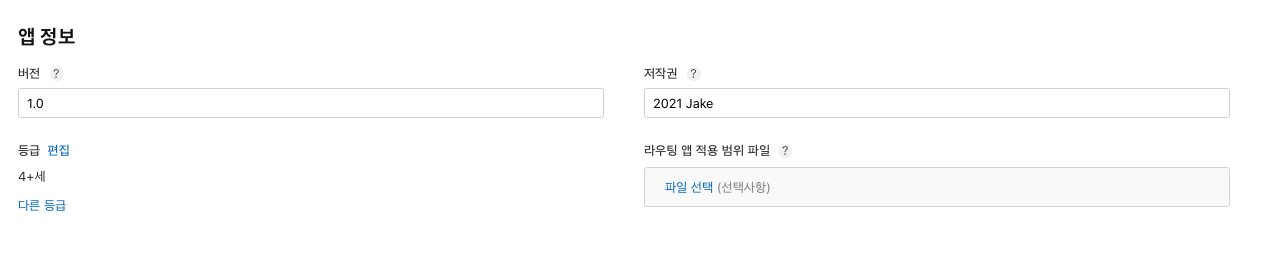 - 앱 정보 - 저작권에는 "날짜 법인 이름", 등급도 추가