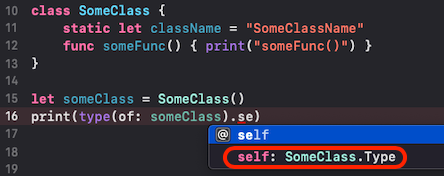 - SomeClass.SomeStaticFunc() 호출에서 사실상 .self가 생략된 형태: SomeClass.self.SomeStatisFunc()와 동일
