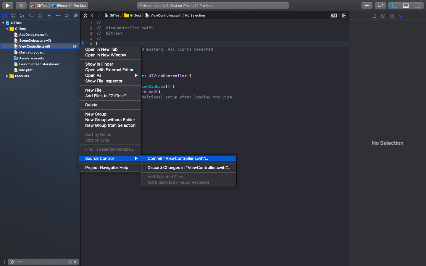 2) git 명령어 사용: "M"(Modify)뜬 파일을 오른쪽 마우스로 클릭 후 Source Control누르면 보이는 것 확인