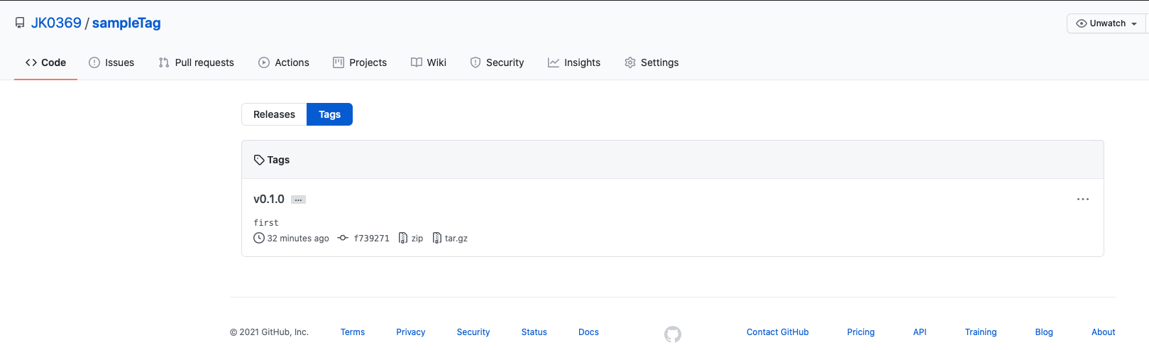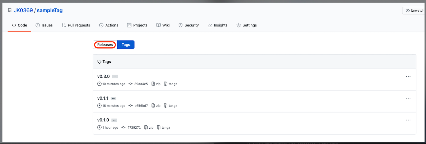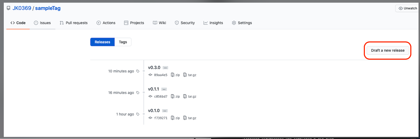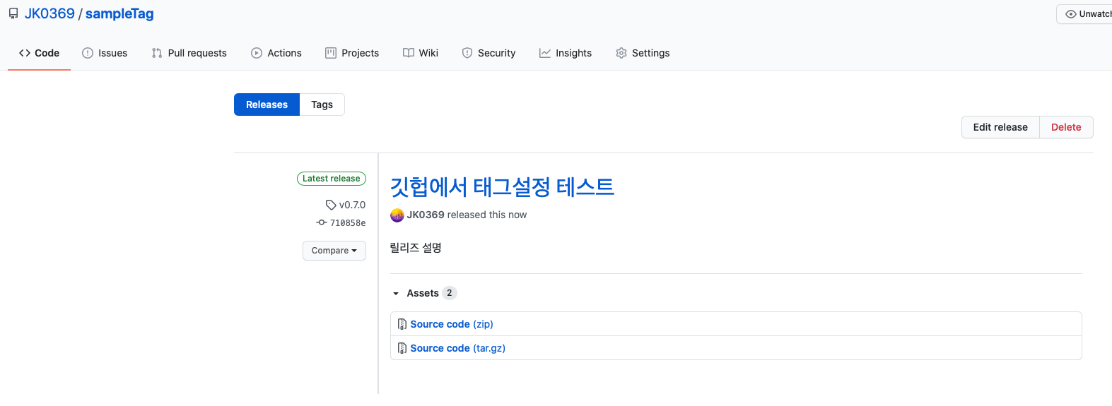 - tag를 등록할 Github(또는 gitlab) remote접속 -> tag 클릭