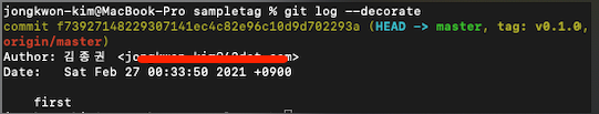 - tag 이름 설정 (현재 HEAD에 tag 설정)