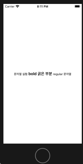 - 현재 상태: UILabel.text = "문자열 실험 bold 굵은 부분 regular 문자열"