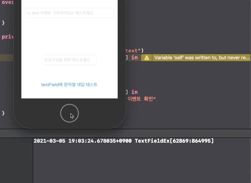 - KVO를 이용한 방법이므로 키패드로 textField에 입력했을 때는 이벤트가 발생하지 않고, textField.text = "예시"로 대입한 경우 이벤트 발생