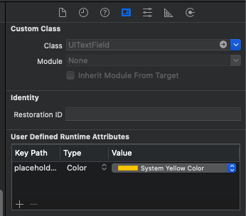 - User Defined Runtime Attributes에서 속성 추가: placeholderLabel.textColor