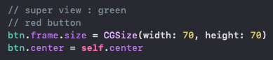 -> 빨간 버튼을 초록색 기준으로 self.center만큼 이동하게 된다면, 훨씬 오른쪽으로 가는 것