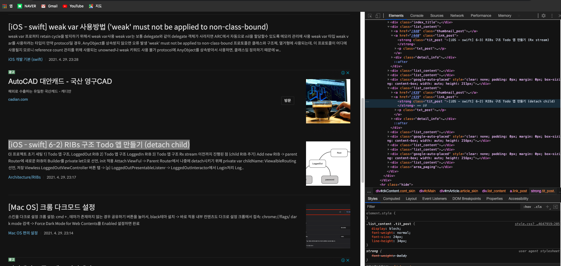 - 결과: #mArticle > div:nth-child(7) > a.link_post > strong
