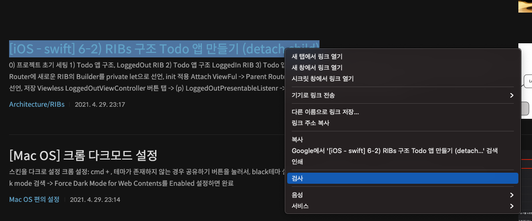 - 크롤링할 사이트를 크롬으로 열은 후 크롤링할 문구 오른쪽 클릭 -> 검사 선택
