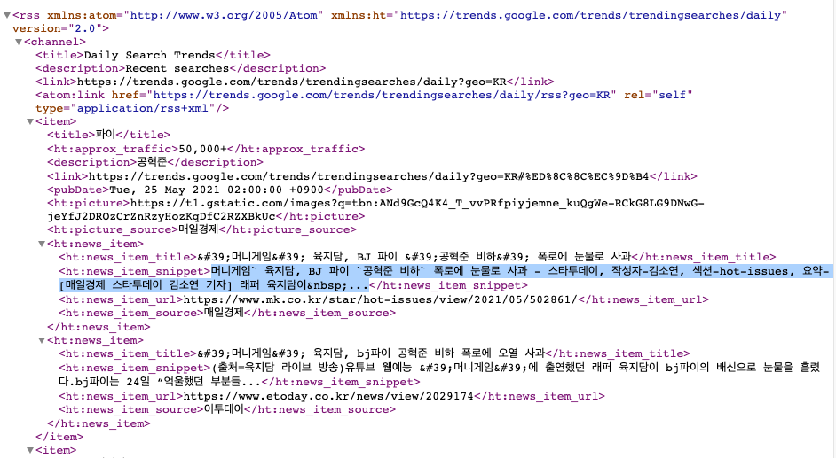 let url = "https://trends.google.com/trends/trendingsearches/daily/rss?geo=KR"