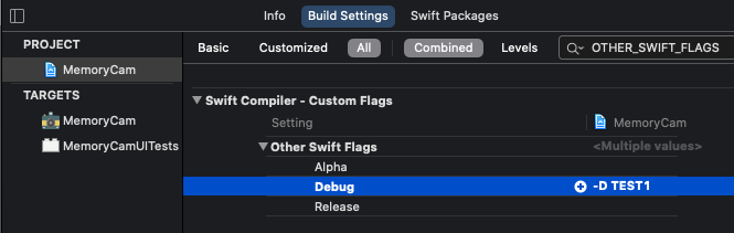 - Target -> Build Setting -> OTHER_SWIFT_FLAGS에 전처리기 관련 flag 추가