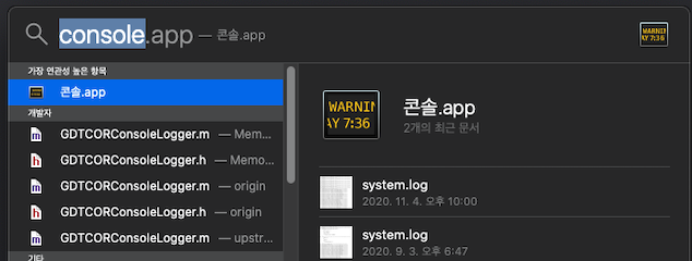 6. mac의 '콘솔' 앱을 사용하여 로깅
