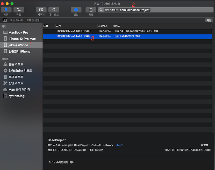 2. 하위 시스템으로 필터링 (OSLog의 subsystem을 bundle id로 했으므로 bundle id기입)