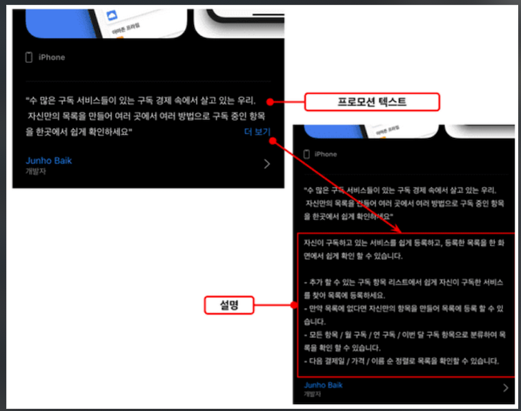 - App Store 검색에서의 키워드 (하나 이상의 키워드 필요)