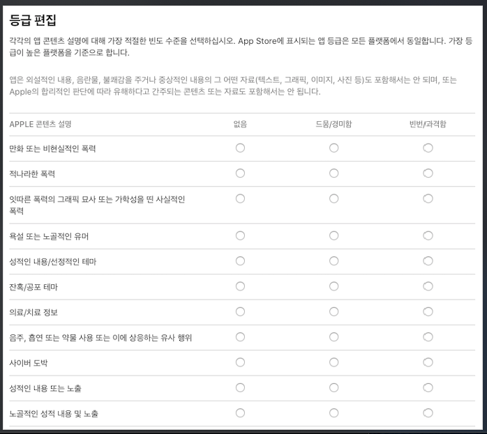 - 애플 가이드: https://help.apple.com/app-store-connect/#/dev1b4647c5b