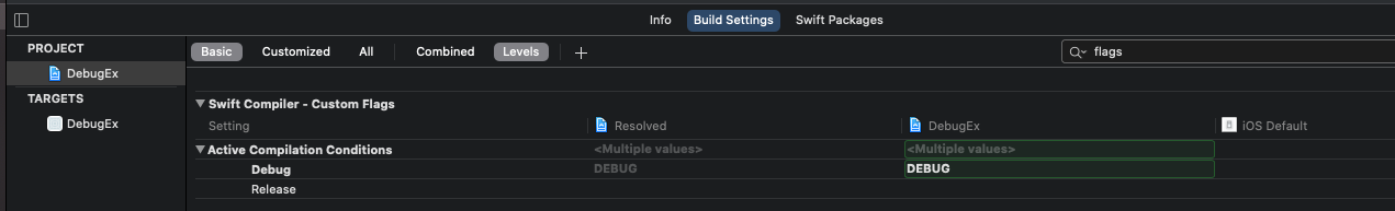 - xcode 디폴트는 `DEBUG`플래그가 존재