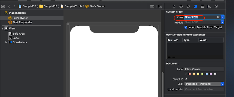 - xib 파일 생성: SampleVC.xib
