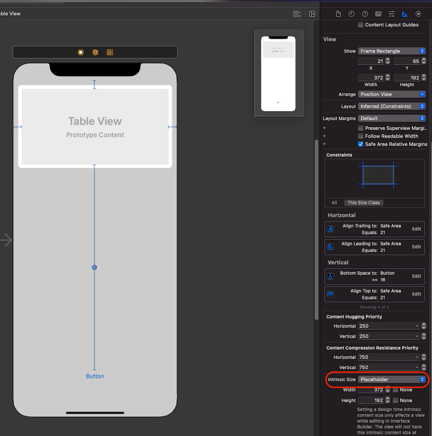 - tableView의 intrinsic Size를 수정: default(system defind) -> Placeholder