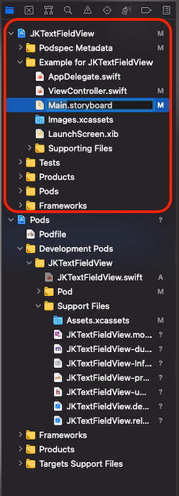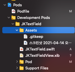- 테스트: Pods디렉토리는 직접 만들 라이브러리, 테스트는 JKTextFieldView디렉토리에서 진행