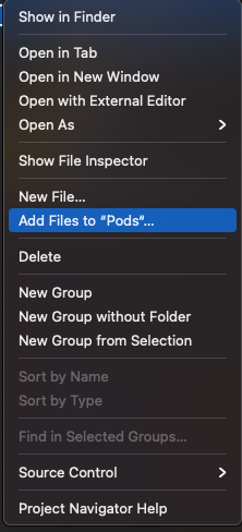 - 파일을 다른 곳에서 복사하여 복붙하고 싶은 경우, Finder에서 Classes파일에 복붙 후, Xcode에서 "Add Files to pods"으로 추가하면 편리
