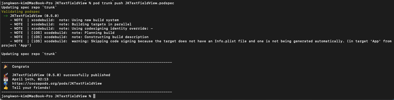 | [Cocoapods] 2. cocoapod 배포 - 코코아팟 라이브러리 소스코드 생성, 오픈소스 만들때 고려할 점 (0) | 2021.04.12 |