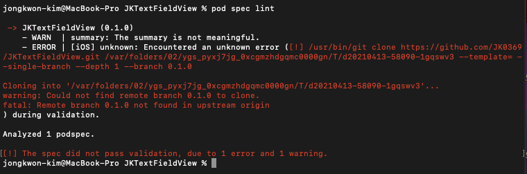 1) "- WARN | summary: The summary is not meaningful.": .podspec부분의 s.summary 값을 디폴트로 둔 경우