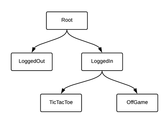 -> LoggedInRIB을 통해 TicTacToe 게임 ViewController 화면이 유저에게 표출 - LoggedOut RIB이 Root RIB에게 로그인 완료 상태 알림