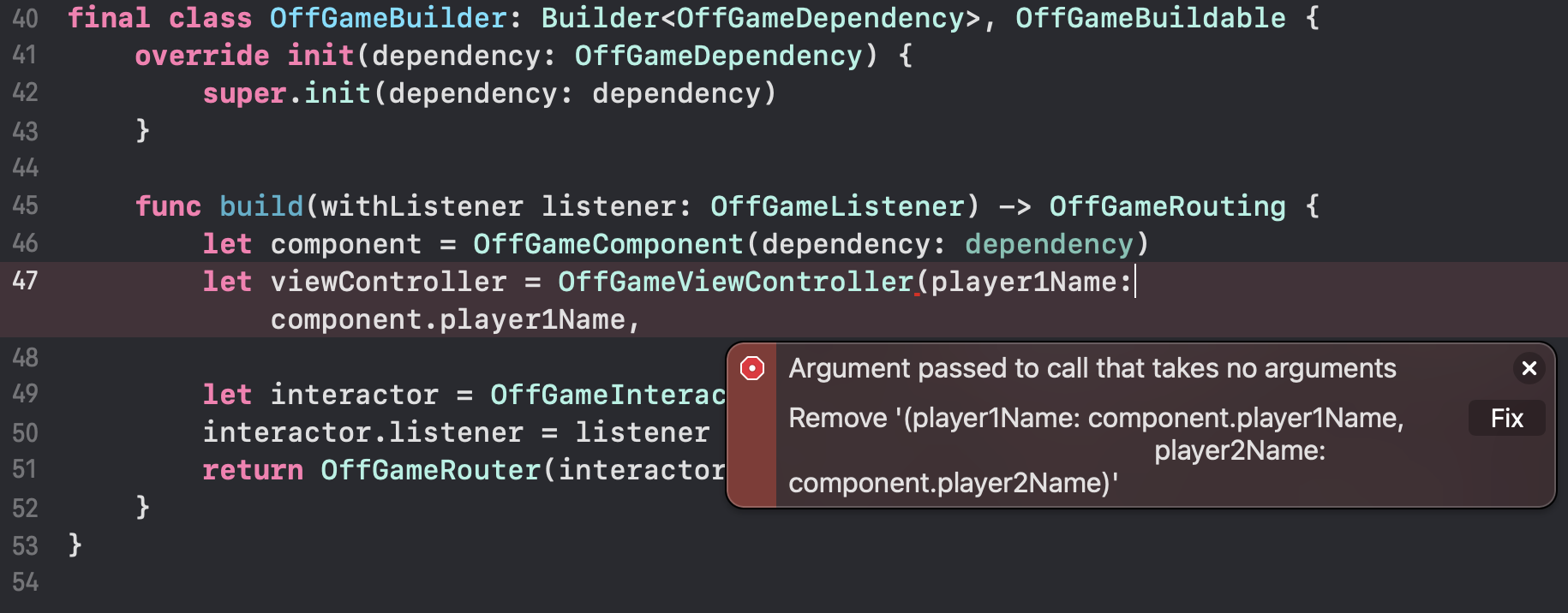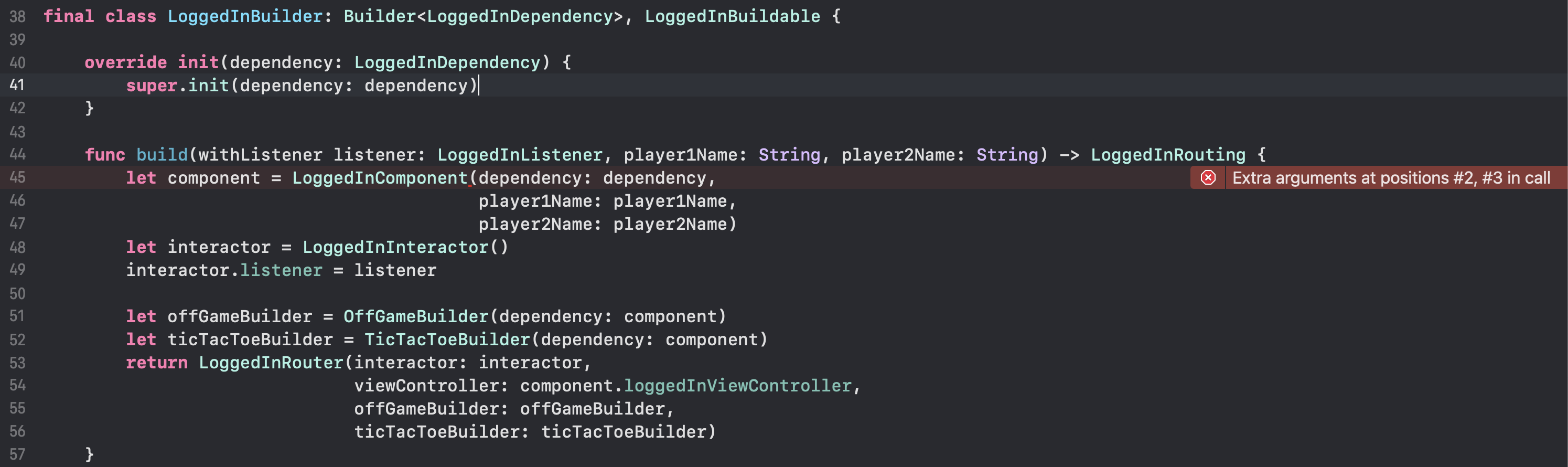 let loggedIn = loggedInBuilder.build(withListener: interactor, player1Name: player1Name, player2Name: player2Name)