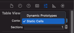 - tableView의 Cell 속성 - Static Cells 선택