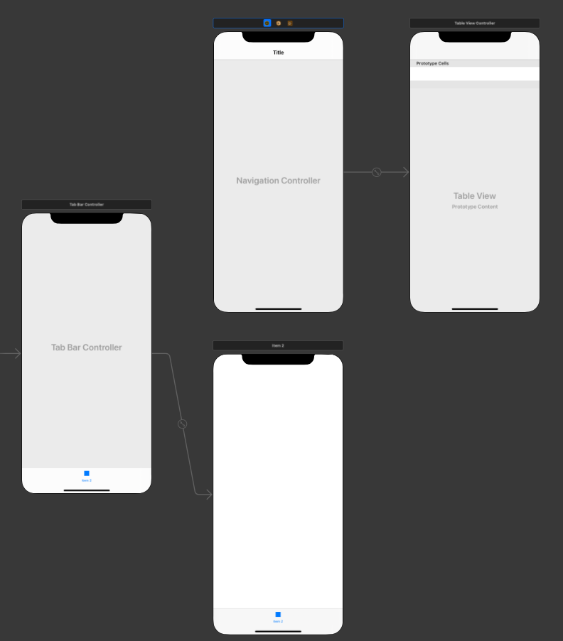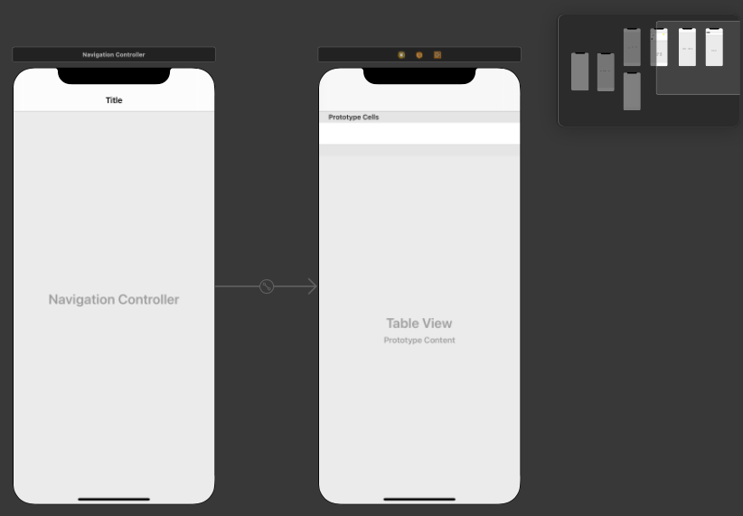 - NavigationController추가: 생성된 TableViewController에 embed in > Navigation Controller 선택