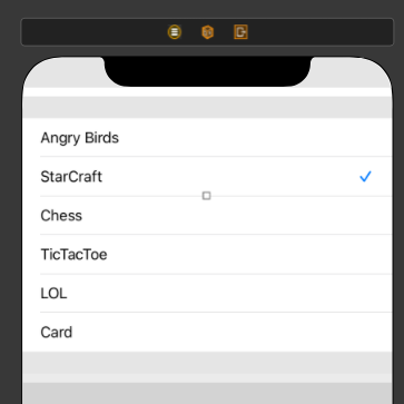- TableViewController 추가 > 하나의 Cell에 StackView, Lable 추가 후 6개의 row 생성 > 그 중 하나의 Accessory를 Checkmark