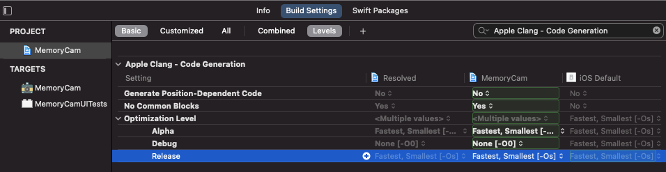 [iOS - swift] Xcode에서의 configuration별 build Settings 설정값 (최적화) 본문