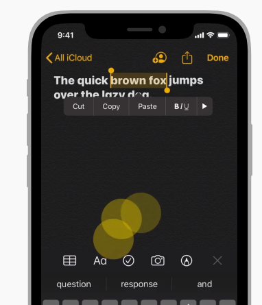 - Touch and hold: 길게 터치시 텍스트 편집메뉴 표출