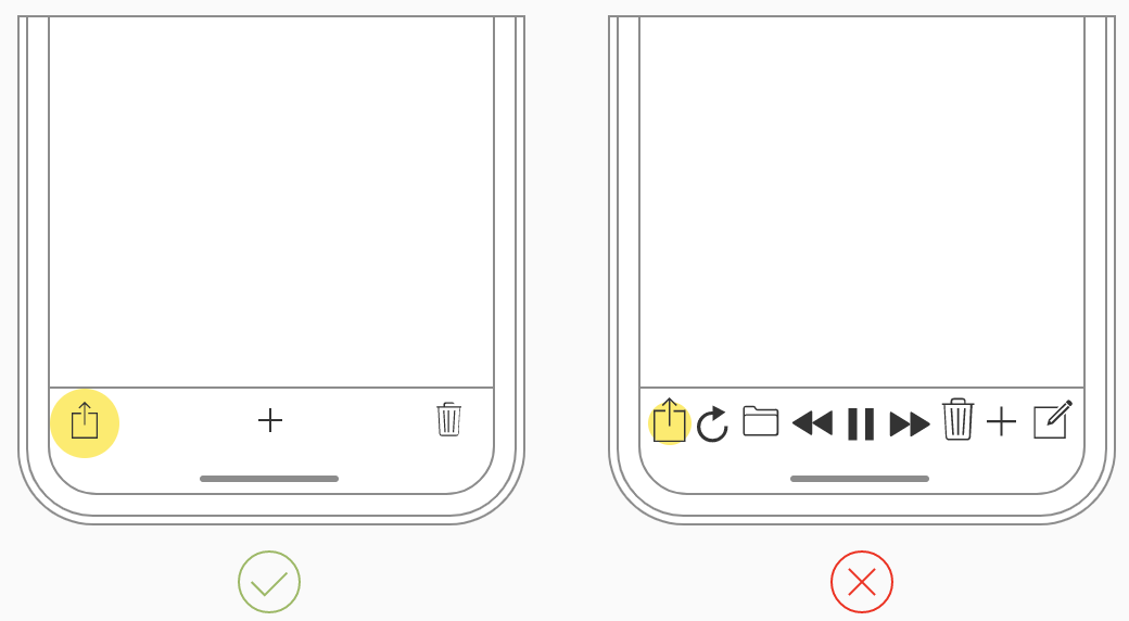 - 화면 맨 아래, 모서리에 interface control 컴포넌트를 배치하지 말것