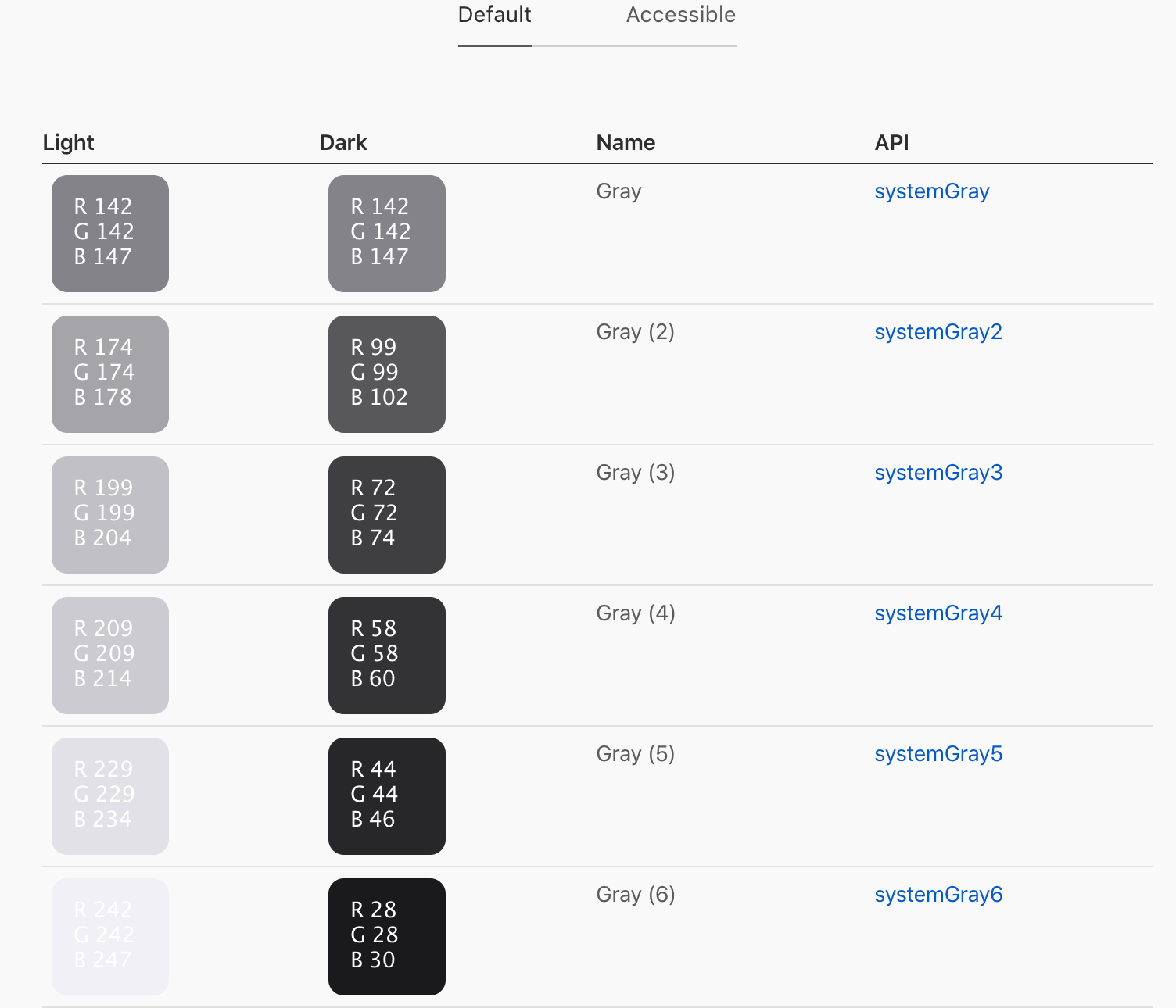 - UIColor.opaqueSeparator: 기본 콘텐츠가 표시되지 않도록 하는 구분 색상