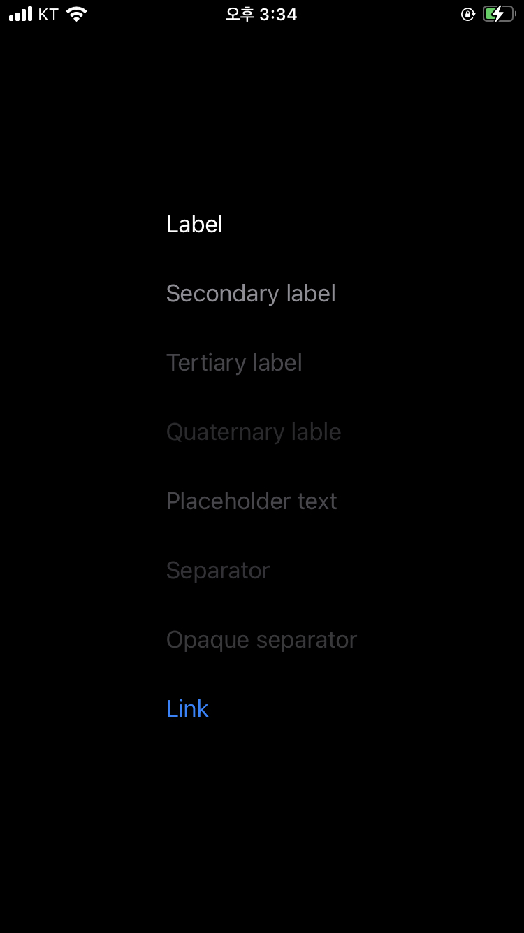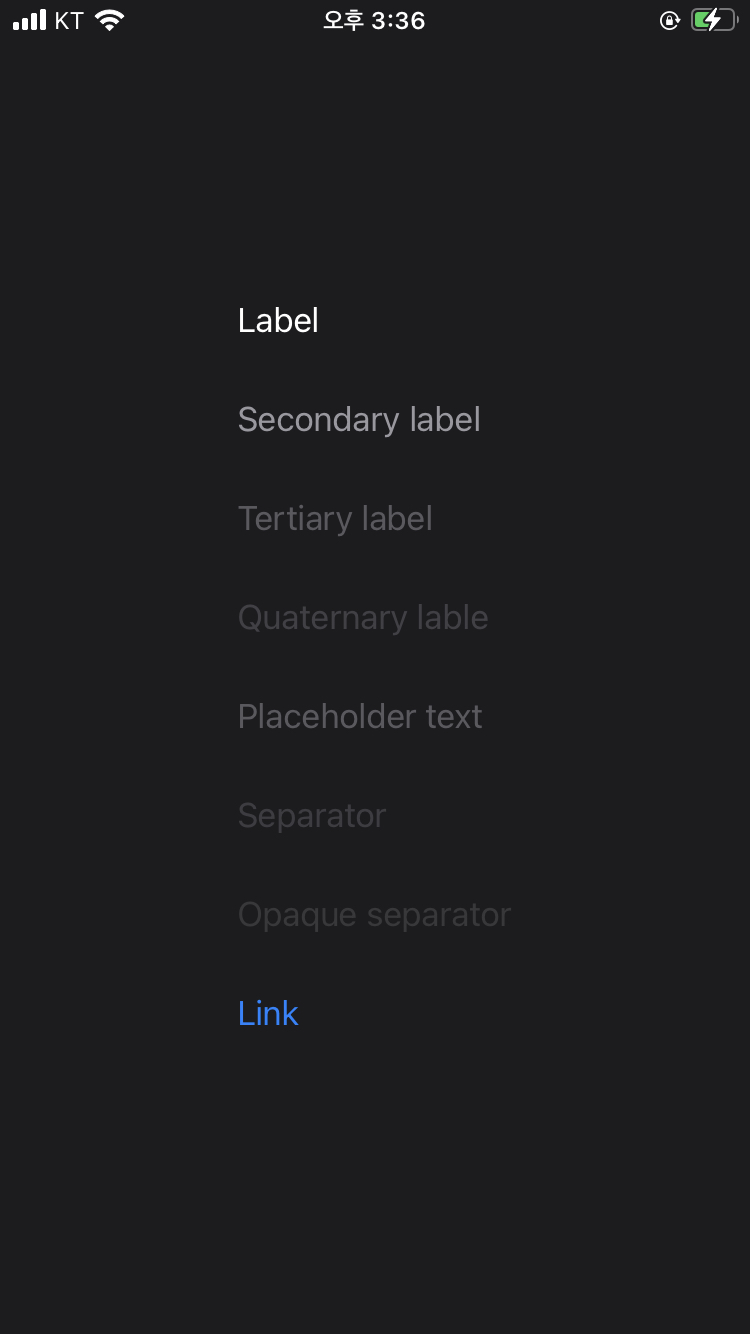 - UIColor.tertiaryLabel: 3차 보조 컨텐츠 (덜 중요한)