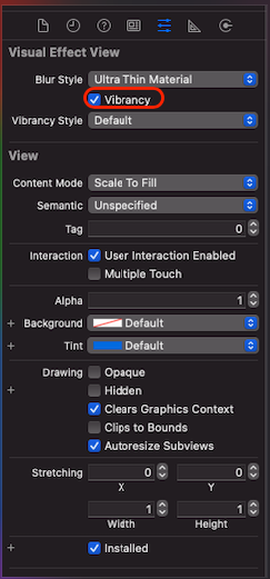 - Vibrancy Style도 지정하여 적절한 alpha값 선택
