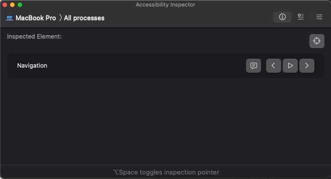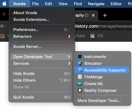 - 창이 나오지 않으면 Accessibility Inspector -> About Accessibility Inspector 선택