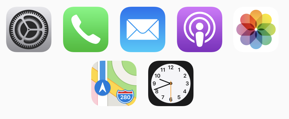 - 즉시 주의를 끌고 앱을 명확하게 식별하는 단일 중앙 지점 아이콘 선택
