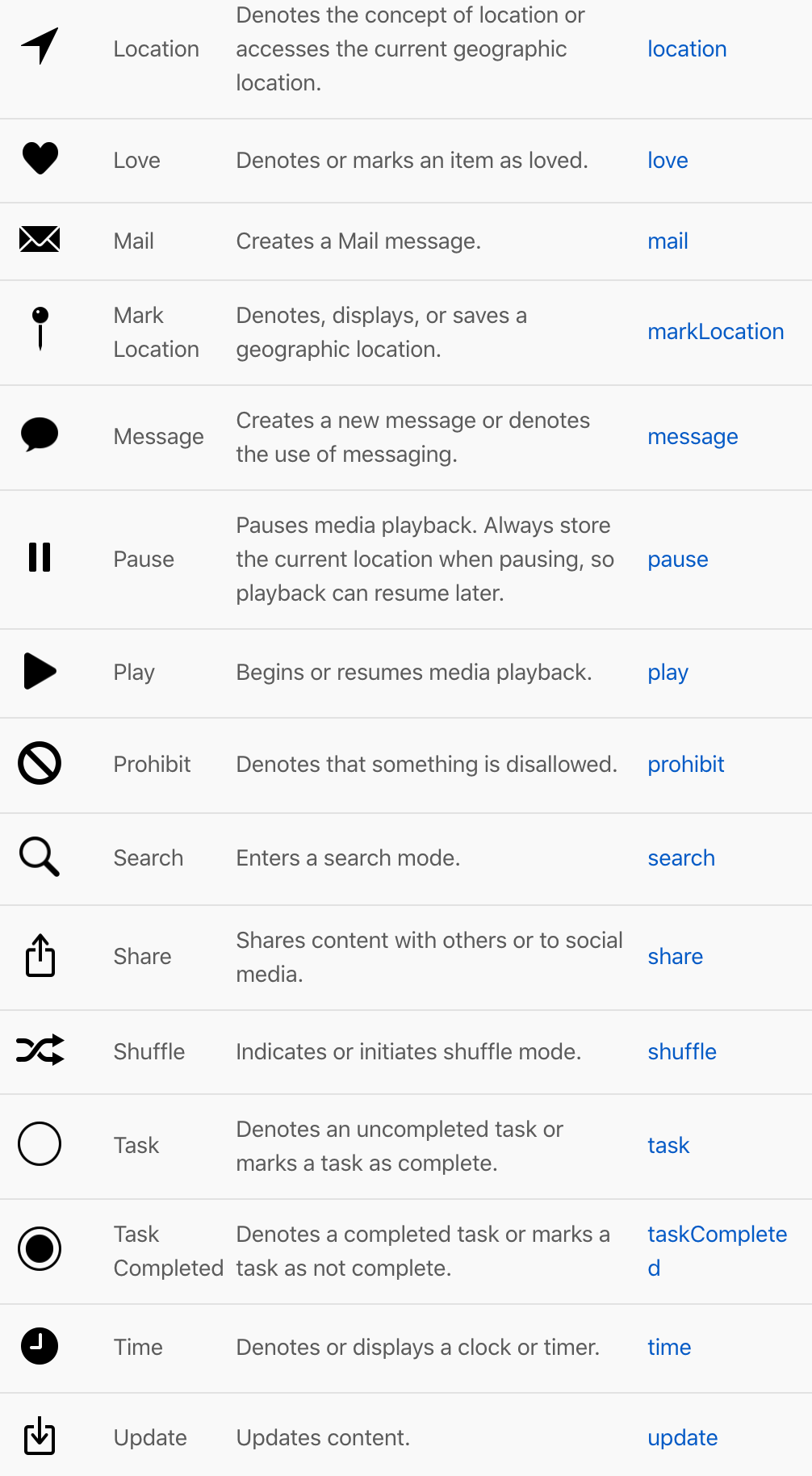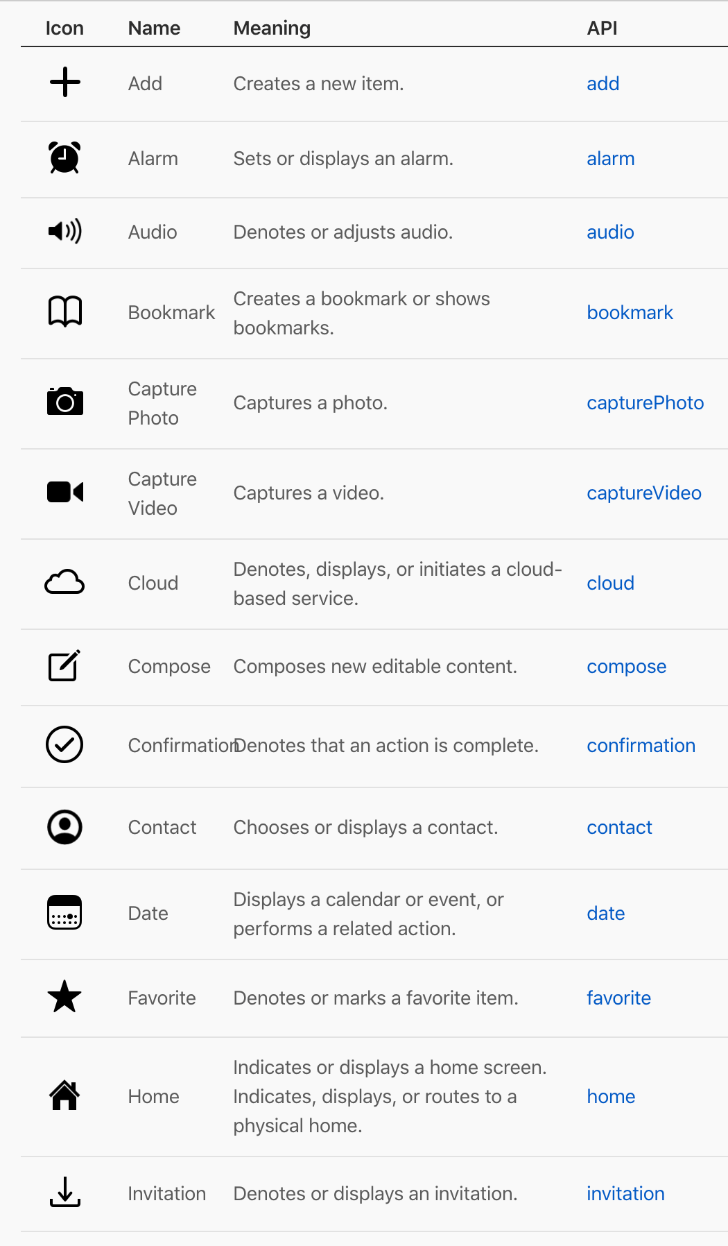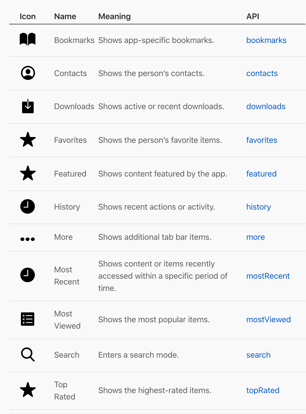 - iOS 12이하: UIBarButtonSystemItem, UITabBarSystemItem, UIApplicationShortcutIconType