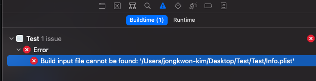 - 빌드 시 에러: "Build input file cannot be found: ... info.plist"