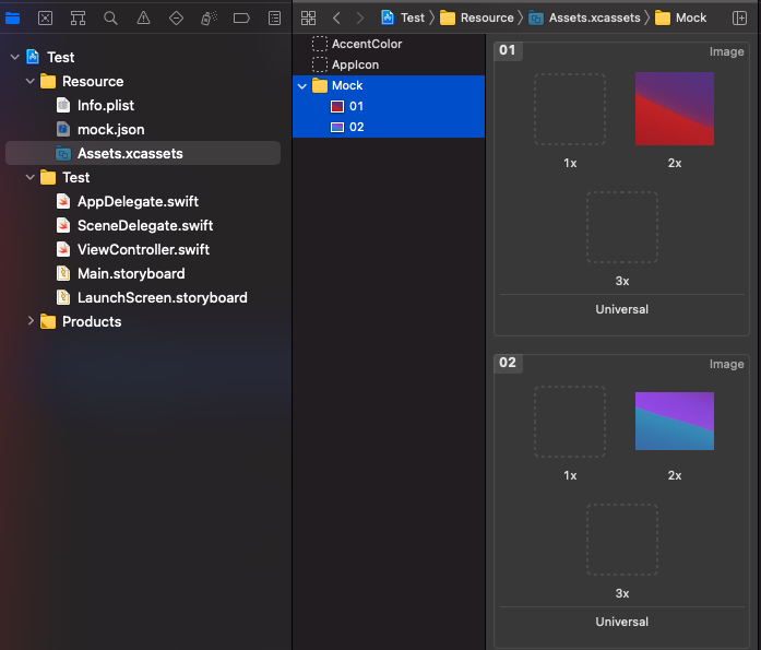 - 클라이언트에서 데이터를 받는 방법은 .swift파일 내에나 plist에 세팅하는 방법이 있지만, 일반적으로 웹에서 json파일을 받아서 사용하는 방법이 많으므로 mock데이터도 json파일로 이용