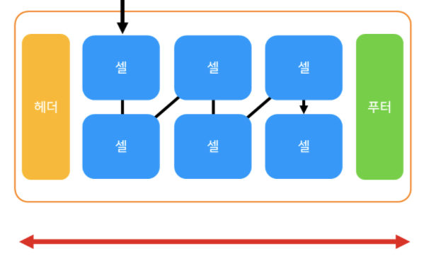 - 만약 현재의 행에 더이상 셀이 들어갈 수 없다면 새로운 행을 만들어서 다음 셀에 삽입