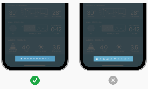 - Indicator image에 색상을 지정하는 것을 지양: 시스템이 자동으로 indicator 색상을 지정하는것이 현재페이지 와의 대비를 높일 수 있는 가장 좋은 방법