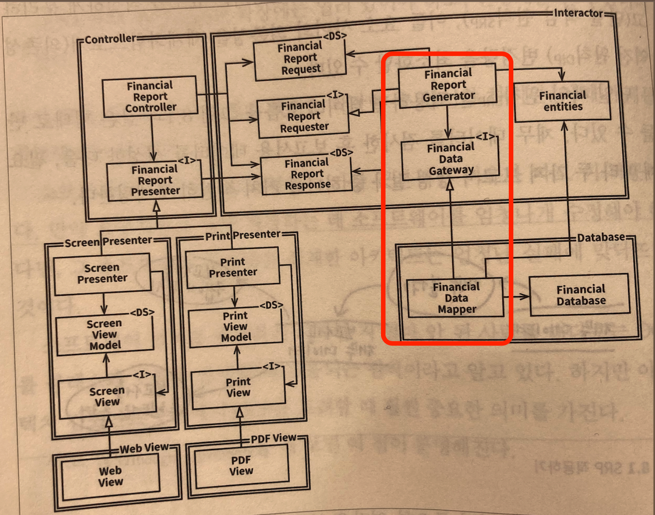- Database로부터 Interactor보호하기 위해서 Financial Report Generator에서 Financial Data mapper로 참조하고 있지 않은 형태