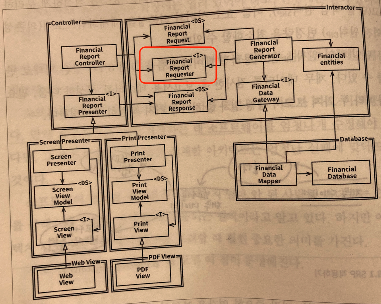 - Financial Report Requester는 방향성 제어의 의미도 있지만, 진정한 목적은 Controller가 Interactor 내부에 대해 많이 알지 못하도록 하는 목적