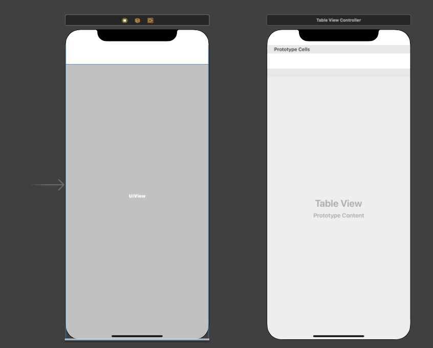 - ContainerView를 TableView의 크기 레이아웃 설정 > embed segue로 이어진 View Controller 삭제